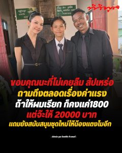 ล่าสุด ผู้ใช้เฟซบุ๊กชื่อ “สัปเหร่อ ภูธร” ได้โพสต์ภาพพร้อมข้อความบอกเล่าเรื่องราวชวนซึ้งใจ หลังจากได้ทำหน้าที่ช่วยดูแลงานศพของคุณพ่อจ๊ะ โดยระบุว่า “#จ๊ะ ขอบคุณนะที่ไม่เคยลืม สัปเหร่อ ถามถึงตลอดเรื่องค่าแรง ถ้าให้ผมเรียกก็คงแค่ 1,800 แต่จ๊ะให้ 20,000 แถมยังสนับสนุนชุดใหม่ให้น้องแตงโมอีก”