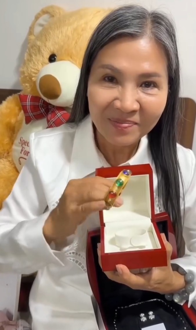 โดย แม่แก้ว สุดารัตน์ คูกิมิยะ ได้โพสต์คลิปอวดของรับขวัญลูกสะใภ้ขอนแก่น ซึ่งประกอบด้วยสร้อยคอและตุ้มหูที่เจ้าตัวออกแบบเองทั้งหมด พร้อมด้วยกำไลข้อมือประดับ “พลอยพญานาค” หรือ “มณีใต้น้ำ” วัตถุมงคลที่หลายคนเชื่อว่าเป็นหินศักดิ์สิทธิ์จากเมืองบาดาล ช่วยเสริมโชคลาภ บารมี เมตตามหานิยม และคุ้มครองภัย