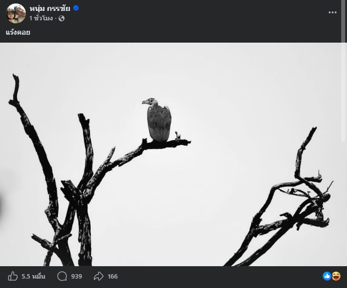 ล่าสุดวันนี้ (24 เม.ย 69) “หนุ่ม กรรชัย” ได้ออกมาโพสต์ภาพนกแร้ง โดยมีข้อความสั้นๆ ว่า “แร้งคอย” เอ๊ะอ่านแล้วแปลกๆ ท่ามกลางชาวเน็ตที่ได้เข้ามาคอมเมนต์ต่างๆมากมาย ก็ไม่รู้ว่าโพสต์ดังกล่าวจะมีความเชื่อมโยงอะไรถึงดราม่าในช่วงนี้ไหมคะเนี้ย