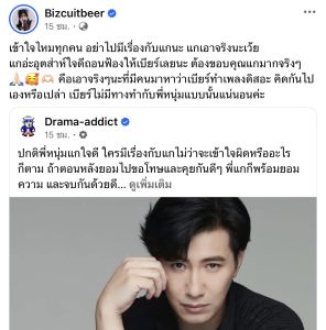 ทางด้านเบียร์ยืนยันว่า นี่หนูขอบคุณเขานะเนี่ย ทำไมคนอื่นคิดลบกันจังคะ