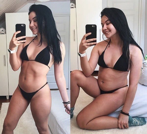 แค่แอ่นก้นไปด้านหลังนิดหน่อยก็ดูหุ่นดีขึ้นมาแล้ว