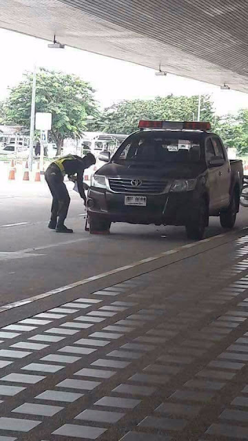 รปภ.ของสนามบินอุดรธานี ทำการล๊อคล้อรถของจนท.ตำรวจที่จอดรถในที่ห้ามจอด