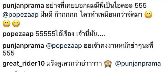 เรียกว่าฟินกันทั้งบ้านทั้งเมืองเลย กับฉาก “คุณพี่เดช” (โป๊ป) กอดหมอนของ “แม่หญิงการะเกด” (เบลล่า) ที่ให้ไว้เป็นของแทนใจระหว่างเดินทางไปฝรั่งเศส ซึ่งคุณพี่ก็กอดรัดฟัดเหวี่ยงหมอนซะสาวๆ อยากจะเป็นหมอนแทน แต่ในขณะเดียวกัน “หนุ่มโป๊ป” ก็เปิดโหมดอ่อยนิดๆ โดยโพสต์ภาพกอดหมอนตุ๊กตา พร้อมแคปชั่นละลายใจสาวๆ “กอดหมอนไหน ก็ไม่เท่ากอดเธออออ คิๆๆ อ้วกกกก” และไม่นาน นักแสดงหนุ่มในเรื่อง “ปั้นจั่น-ปรมะ” หรือ “ขุนเรือง” ก็ทำให้สาวๆ กรี๊ดหนักกว่าเดิม โดยการโพสต์ภาพเลียนแบบ “หนุ่มโป๊ป” พร้อมแคปชั่น “อย่างที่เคยบอก ผมมีพี่เป็นไอดอล 555@popezaap ฝันดี ก๊ากกกก ใครทำเหมือนกว่าจัดมา” เรียกว่าบรัพกันไม่ลงเลย แต่สักพักพระเอกหนุ่ม “เกรท-วรินทร” ก็แวะเข้ามาแซว “มึ-ดูเลวกว่าอ่าาาา” โอ้ยยยย…หนุ่มๆ เขาอารมณ์ดีกันจัง