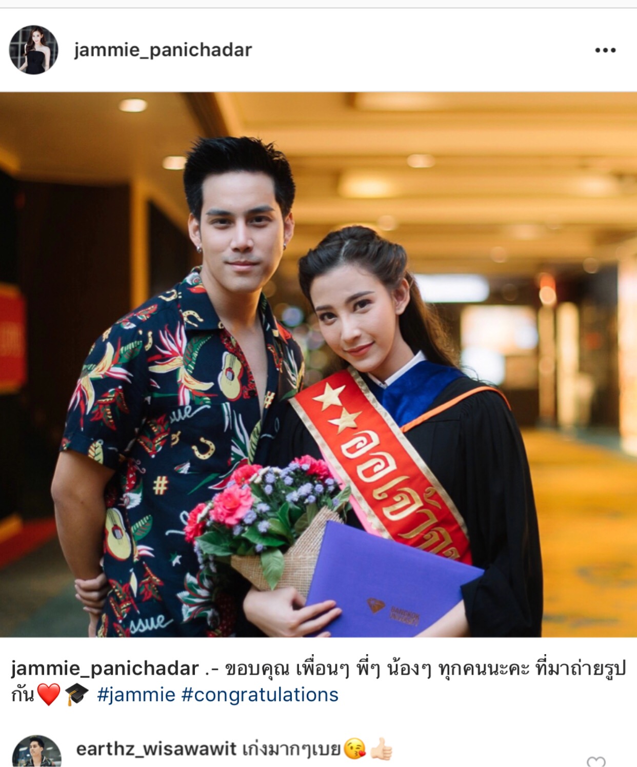 เรียกได้ว่าสนิทสนมกันสุด ๆ เพราะในโอกาสวันสำคัญในวันรับปริญญาของฝ่ายหญิง หนุ่ม “เอิร์ธ” ก็ไปร่วมแสดงความยินดี